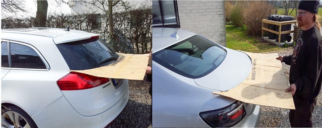 In late December 2015, Jonas and Lotta bought an Opel Insignia Tourer. When Jonas walked up their driveway one day and saw this car parked parallel to his Saab 9-5NG, he noticed the design lines being different -yet similar- and the thought struck him to start including Insignia Tourer body parts to custom-build a Saab 9-5NG SportCombi instead of the 9-5OG they had been considering earlier. Many hours of planning followed. Michèl Annink –owner of an original Saab 9-5NG SportCombi– was contacted in April to get the exact measurements from his car. It turned out that the Insignia rear window was much rounder than expected and that a custom solution had to be found for the side windows, as neither of the originals would fit this unique Saab.