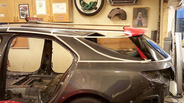 After lots of preparations, the actual cutting of the donor car starts on November 15th and many weeks of additional bodywork follow. Along the process, the decision to add a panorama sunroof also gets taken. In January 2016 the project team gets together again in Trelleborg. Much progress had been made: a movable rear door and the frame for the specific “combi” shape were in place. New team members Oskar, Joel and Philip started disassembling the interior parts, the windows and the front of the donor car.